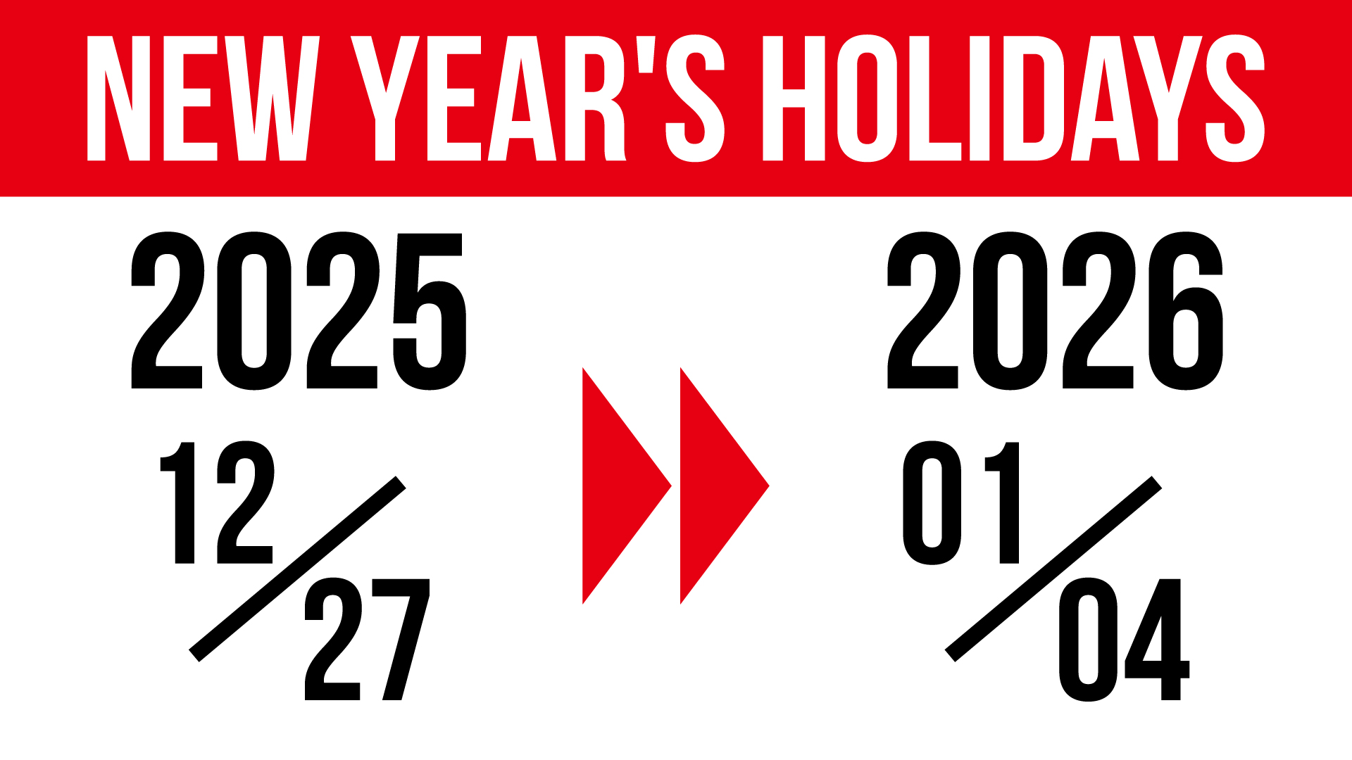 平素は格別のお引き立てをいただき厚くお礼申し上げます。 弊社では、誠に勝手ながら下記日程を年末年始休業とさせていただきます。 ■年末年始休業期間 2025年12月27日(土) ~ 2026年1月4日(日) 休業期間中にい … 年末年始休業のお知らせ